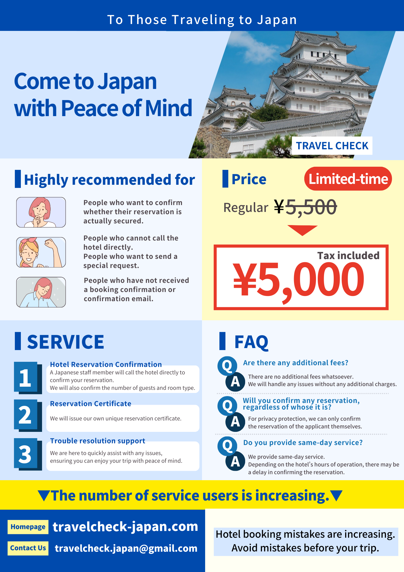 TRAVEL CHECK is a hotel reservation confirmation service for people traveling to Japan.